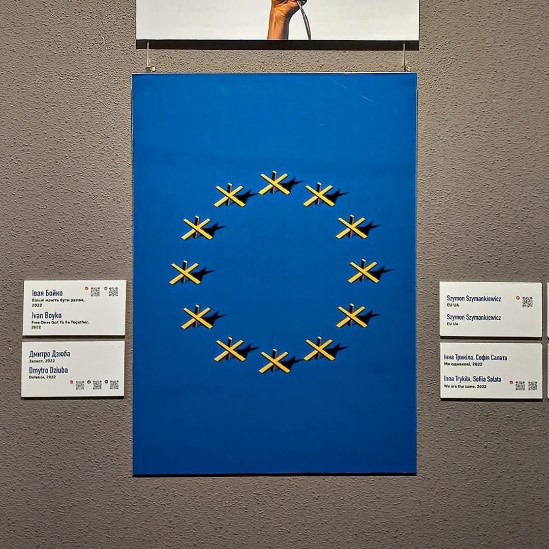 «Шлях України до ЄС в ілюстраціях, плакатах, арт-творах». Виставка є відображенням історичних етапів руху України до Європейського Союзу через призму мистецтва. Джерело: Дмитро Дзюба (@dimkarts)